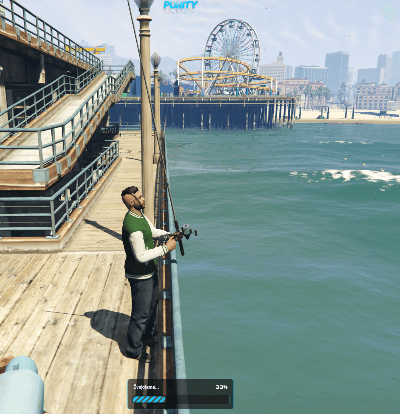 pasirinkite meškerę – spustelėkite ją toje vietoje, kur ji yra, ir pradėsite žvejoti.
