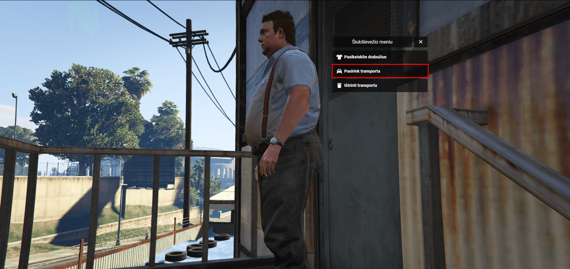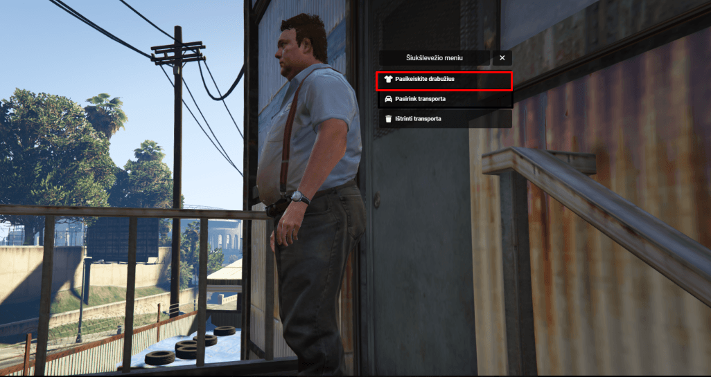 , tuomet spauskite Pasikeiskite drabužius ir pasirinkite transporto priemonę.