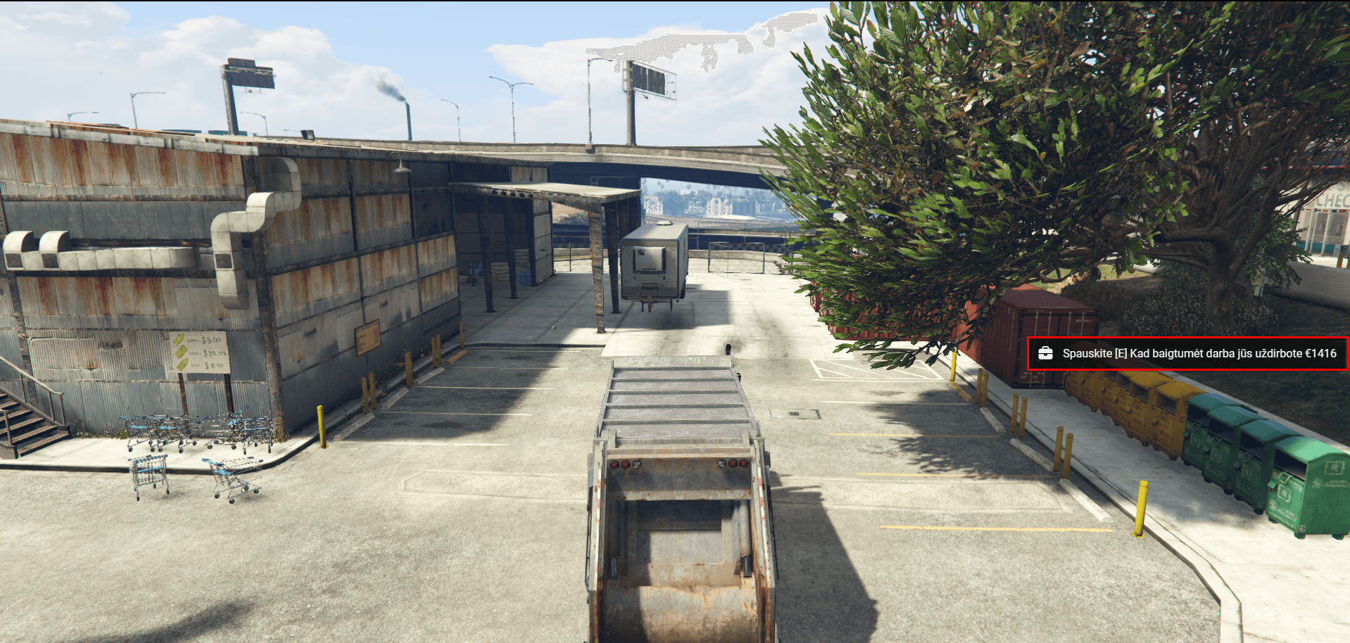 Gavę transporto priemone, keliaukite su ja iki pažymėto taško (pažymėtą tašką matysite savo žemėlapyje), nuvykus į vietą, jūs turėsite prieiti prie konteinerio, palaikyti ALT