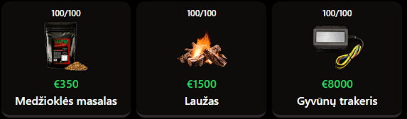 Visa laiką gausite, paskerdę gyvūną, mėsos, kuria galite išsikępti ant laužo ir suvalgyti kada išalksite.Taipogi gausite Elnio odos, kuria galėsite parduoti pas sandelininką.